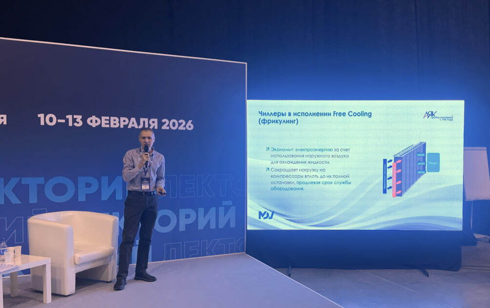 Для ГК «АЯК» участие в подобных мероприятиях — это, в первую очередь, возможность вести прямой диалог с проектировщиками и заказчиками региона. Главный инженер ИЦ «АЯК-Новосибирск» Денис Кожин выступил перед экспертным сообществом с докладом «Энергоэффективный холод: три подхода к реализации фрикулинга» и рассказал, как оборудование MDV справляется с вызовами сибирского климата.