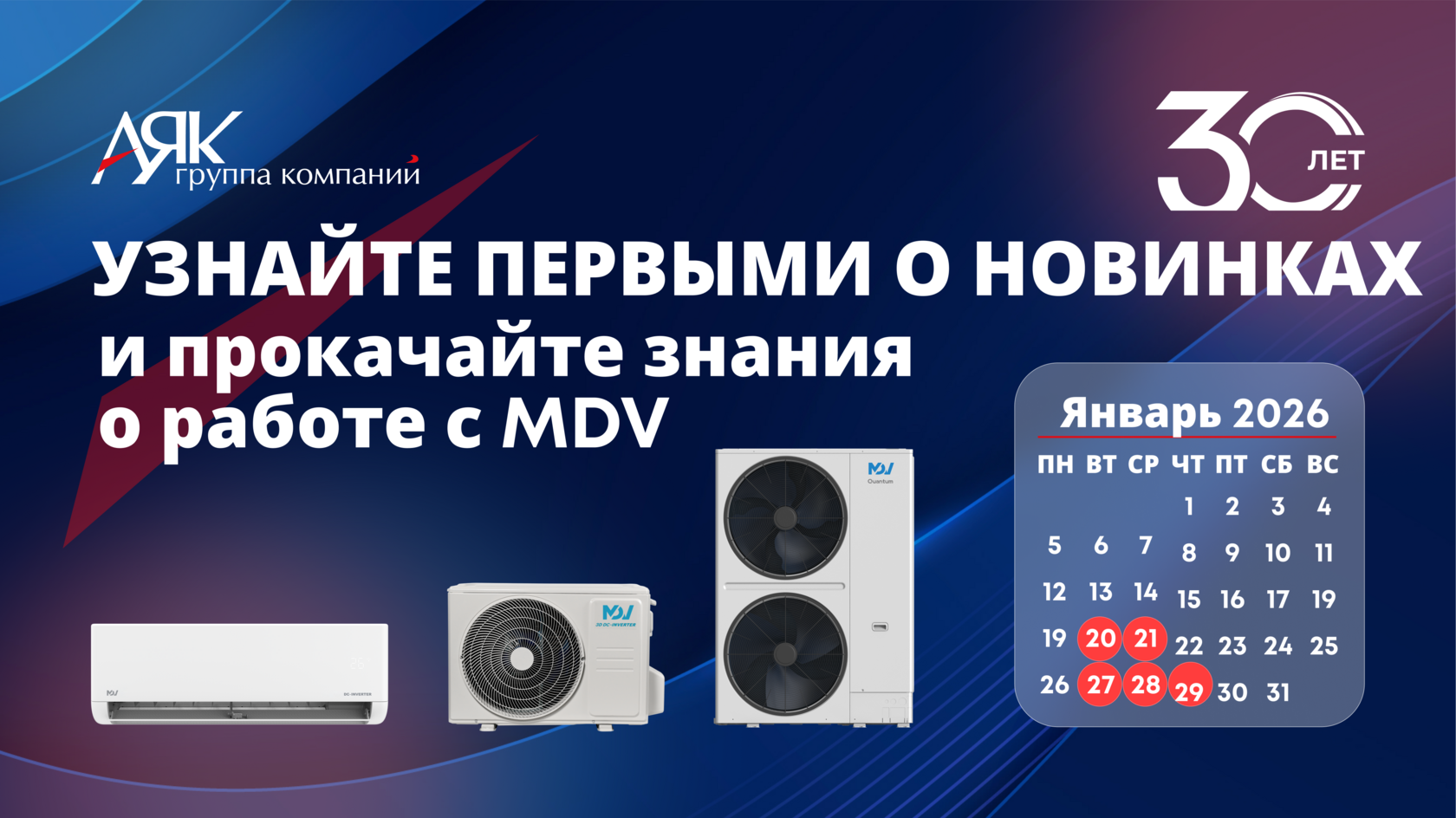 20 января, 11:00–12:30Особенности модельного ряда бытовых, мультисплит- и полупромышленных систем MDV